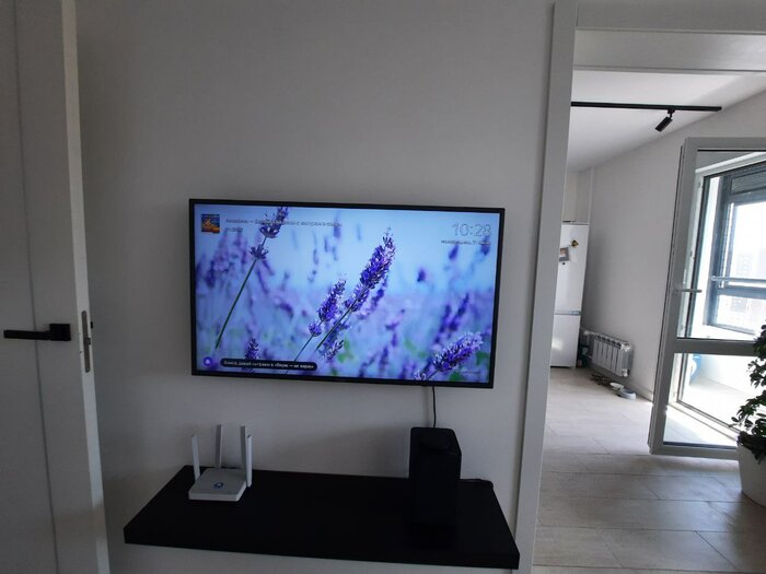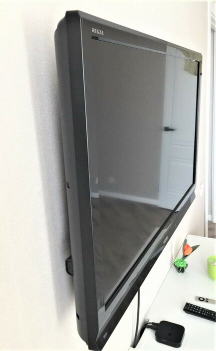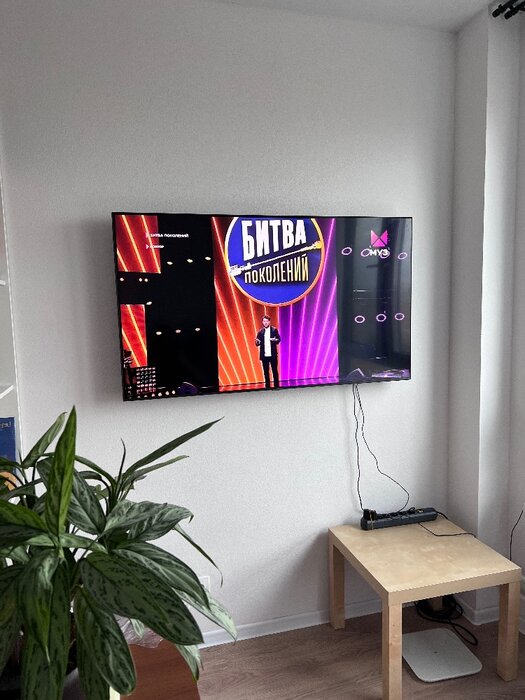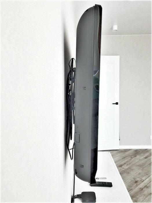 Телевизор 50 диагонали легко и быстро повесил на стену. Расстояние от стены до телевизора небольшое.