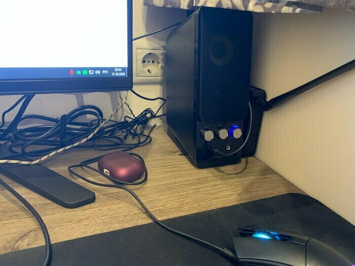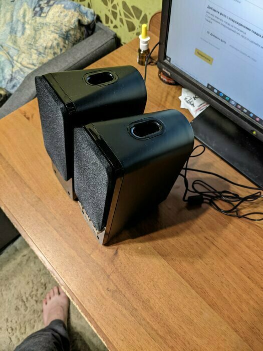 Хорошее качество звучания для такого размера. Есть автовыключение. Это когда звук не идет к ним в течение некоторого времени, то колонки отключаются. Если включить музыку на компьютере, то они автоматически сами включатся.