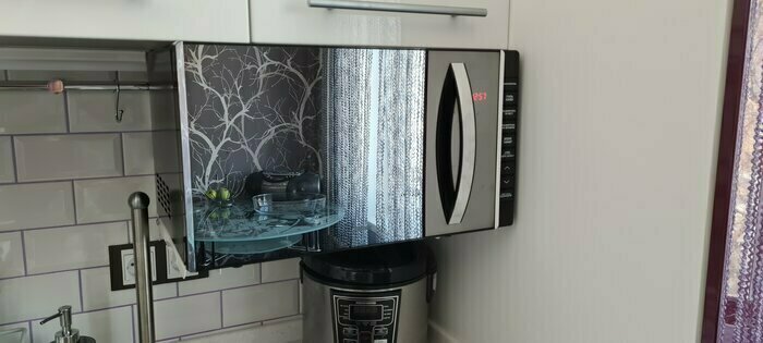 Хорошая большая микроволновка. Довольно мощная, свет при открывании включается