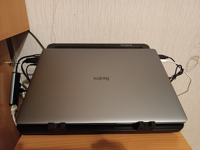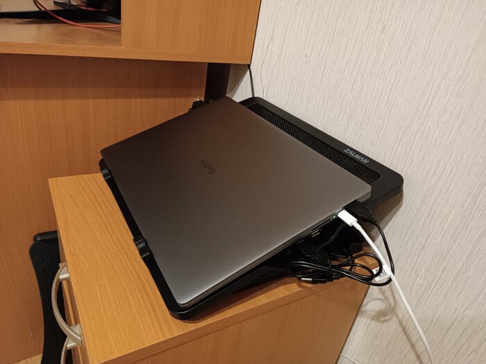 Неудачные габариты для 15.4 ноутбука, остаётся 5 сантиметров сверху. Есть фоновый шум от вентилятора, хотя он работает тише чем кулер в ноутбуке. Подставка громоздкая, не мобильная.