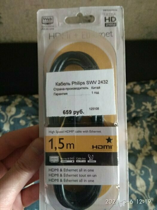 Купил за 173р. Хороший кабель,за хорошую цену.UltraHd 2160p воспроизводит. Но,как правило,не всегда это надо.Отличный кабель,даже за 300р.