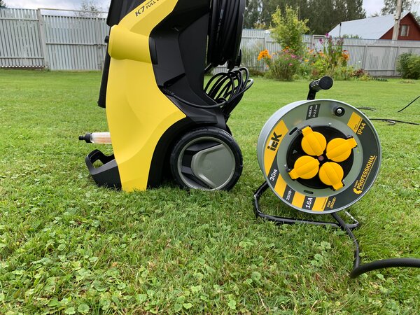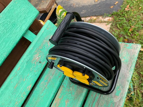 На самом деле за удлинитель четверка с жирным плюсом. Но есть моменты, которые не позволяют поставить 5 баллов. Покупал для дачи, участок 15 соток. Выбирал долго и по сути из нормальных производителей мало кто делает удлинители на катушке. У IEK я так понял это тоже новое направление. Есть еще Шнайдер Электрик, но там 25 метров стоит за 10 тыс. руб. Больше всего не понравились размеры катушки, сам конечно виноват, но и дилемма была из больших зол выбрать меньшее. Катушка на 30 метров идет такая же как и на 20 метров, а у кабеля на 40 метров катушка идет как на 50 метров. Скручивать 30 метров на небольшую катушку неудобно: во-первых, кривошипная рукоятка очень мелкая и постоянно соскальзывает; во-вторых, кабель соскакивает с катушки и весь процесс из удобного превращается в распутывание кабеля; держать катушку, крутить барабан и направлять кабель - нужно 3 руки. Мне и 30 метров нужно редко, а покупать 40 из-за катушки и разматывать лишние 10 метров каждый раз занятие не из приятных. В итоге пришлось брать 30 метров. К тому же по европейским нормативам и инструкциям к бытовым приборам (а катушка покупалась под бытовые нужды), да и в целом, чтобы потери были меньше - при сечении 2,5 мм максимальная длина удлинителя должна быть не более 30 м. Если бы было две модели на выбор с разными катушками, то взял бы на 30 м с большим барабаном и поставил 5 баллов. Про работу как удлинителя не пишу, понятно что здесь всё нормально. Чтобы к чему-то придраться - надо ее разобрать и иметь в наличии инструменты для тестирования. Заниматься разбором я не собираюсь. Если будет мозги делать при работе, а технику я планирую подключать так раз 3-3,5 кВт, то обязательно дополню отзыв. P.S. На фото моющее средство для понимания размеров. P.P.S. Если читает производитель, посмотрите фото какой барабан у Керхера для шланга в 10 м и какая катушка у вас для провода в 30 м. При этом диаметр шланга даже меньше, чем у провода. А там глядишь смотанным и нагрузку в 2 кВт можно бы было подключить.