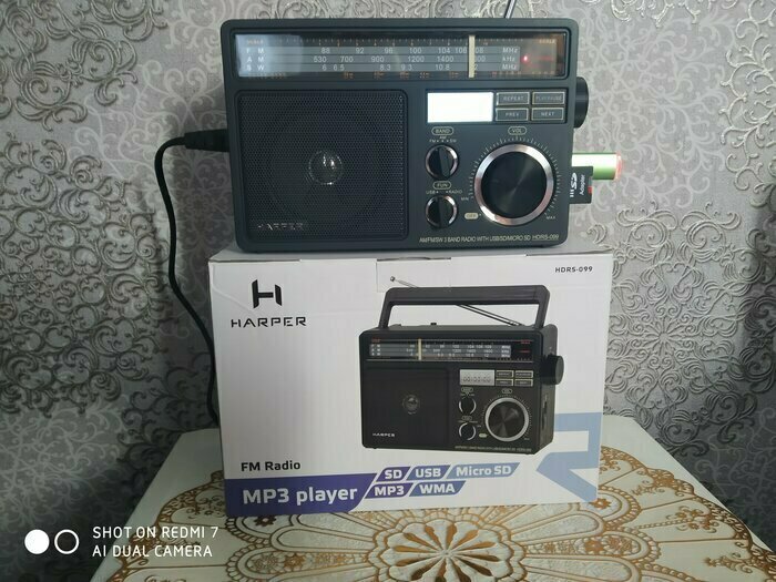 📌Есть проблемы со здоровьем, езжу иногда по больницам. Нужен был новый радиоприемник. Мой старый свое отслужил, решил купить новый. Знакомые по рекомендавали HARPER HDRS-099. Прослушать небыло возможности, покупал в слепую. Заказал радиоприемник в интернет-магазине. В общем купил за 85Бел. Рублей + доставка 10Руб. Не жалею что купил, он стоит этих денег. Приятный звук (даже Басс есть).Не большой но есть. Воспроизводит все Флешки. Качественная сборка, ничего не трищит, не люфтит. Трансформатор не слышан. Слушаю радио и днём и ночью, регулировка звука плавная, отлично регулируется. К покупке рекомендую. ✊👍