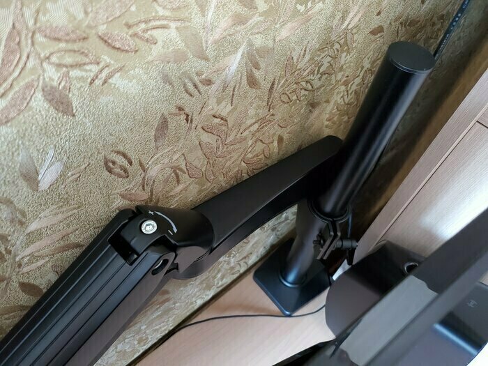Ещё один минус, но в моей ситуации, то что труба мешает задвинуть назад чуть дальше, но это я тупанул Итог: пойдет если вам для чего то нужна эта труба, если нет, то берите без Upd. спустя полтора года приобрел большой монитор, и очень был рад тому, что выбрал именно этот кранштейн, тк сильно выручило, что можно регулировать высоту.