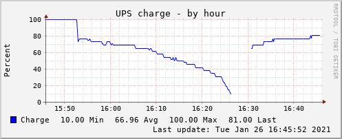 Купил данный ИБП для защиты от перебоев питания NAS и роутера (суммарно 90-110Вт в рабочем режиме). Провел испытание - отключил входные 220В... По мониторингу заряд батареи мгновенно проседает до 80%. Это нормально. При такой нагрузке ИБП продержится в среднем 30 минут. Заряд плавно снижается до "критических" 10%. Заряжается батарея приблизительно за 80 минут. Может и дольше, в зависимости от степени разряженности батареи. Для работы в Linux с NUT в настройках указываем драйвер: driver = blazer_usb Модель давно присутствует на рынке, это в какой-то мере показатель. Надеюсь, прослужит долго. Upd. Покупал два таких ИБП, и в обоих через год примерно сдохли батареи. А для такого ИБП аккумулятор - это 3/4 цены. Купил новые DELTA 1209 UPSseries. Когда менял, с удивлением увидел, что старые дохлые аккумуляторы разных моделей и производителей (см. фото). Не ippon, как думалось. И теперь вопрос: это ippon экономит, или может продавцы объегоривают? Теперь уже не узнать.