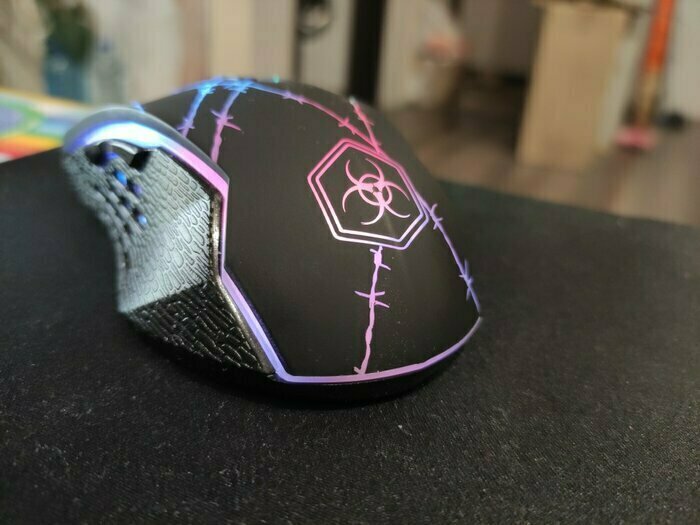 1. Удобная и для игр и для офисной работы 2. Комфортная по размеру 3. Комфортная на ощупь 4. Нормальная подсветка, глаз не режет 5. Есть коврик в комплекте