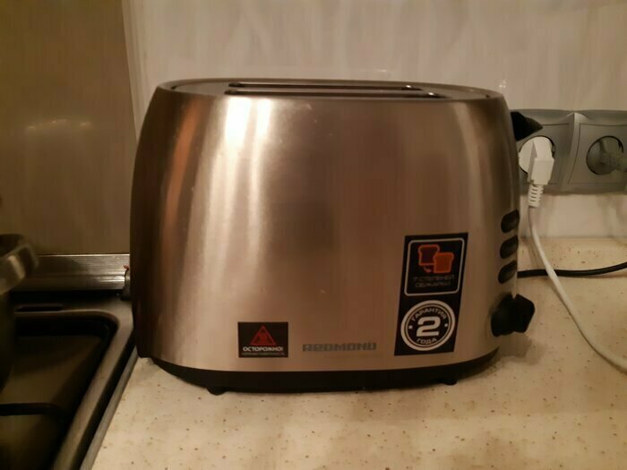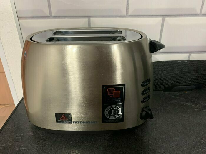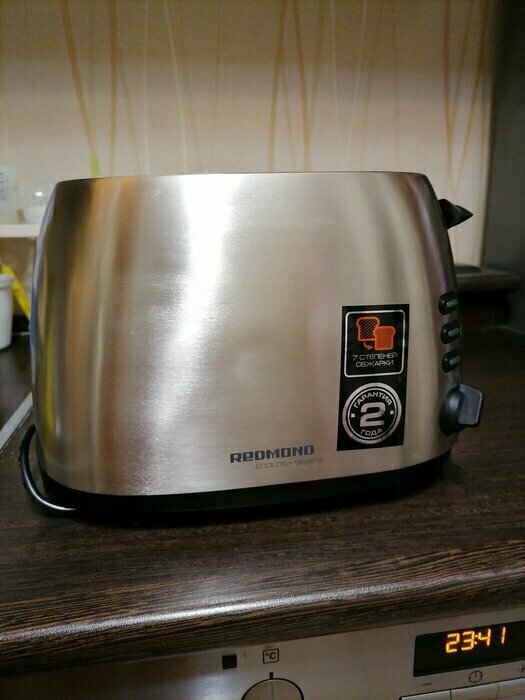 Заказывала доставку, тостер пришёл быстро, упаковка целая, комплектация в полном объёме. Дабы не тратить деньги на курьера, сходила сама в пункт выдачи - их в Москве навалом. Тостер лёгкий, так что донести его самой домой не доставило труда. Внешний вид опрятный, работает отлично, 7 степеней прожарки - под вкус каждого члена семьи. Хлеб прожаривает равномерно и быстро, до румяной хрустящей корочки. Можно спокойно оставить детей с ним на кухне - корпус термоизоляционный, никого не обожжёт, а сами тосты вылезают ровно настолько, чтобы достать их из прибора безопасно и легко.
