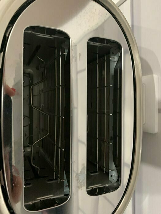 Неравномерно обжаривает большие тосты. На 5 позиции низ и середина ьолее менее нормально, верх бледный.
