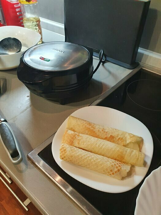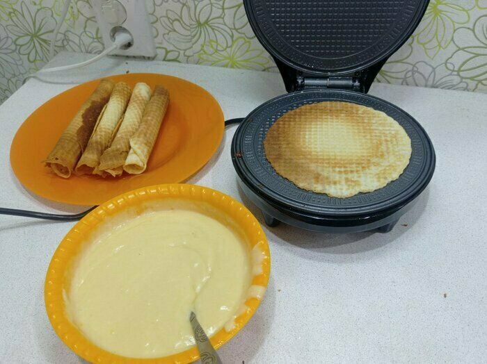 Удобная, быстрый нагрев, а самое главное не дорогая. Вкусные и тонкие трубочки получаются