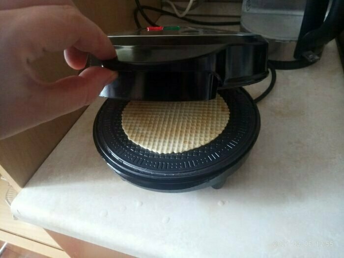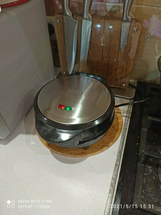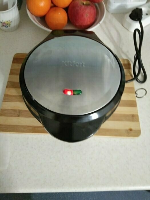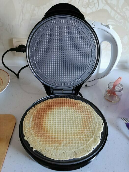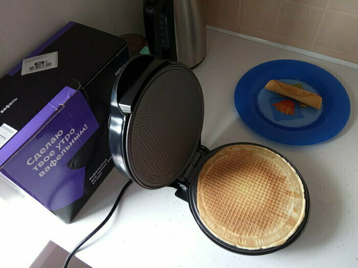 Получил вафельницу в подарок. Отличная вещь. Вафли получаются тонкие и хрустящие. Есть световой индикатор, который сообщает о готовности. После того как лампочка загорается, я считаю до десяти и тогда вафелька получается румяной. Одно удовольствие использовать такой качественный продукт. Благодарю производителя за заботу, качество, упаковку и подарки.
