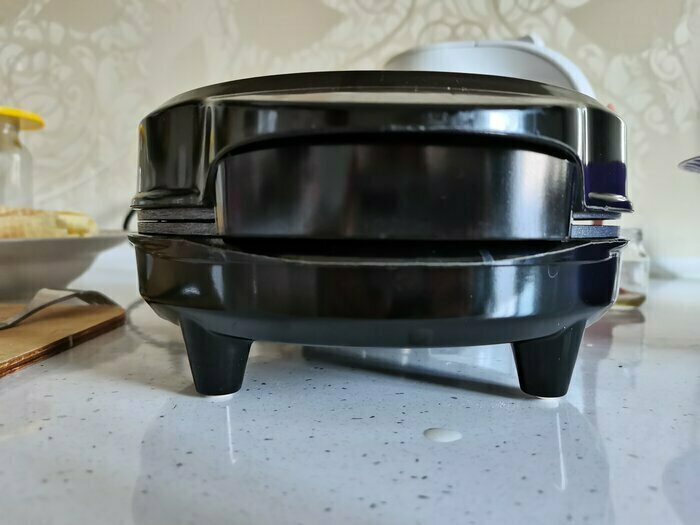 Недостатков нет, есть предложения к конструкции. Сделать больше зазор, чтобы вафелька была равномерной толщиной, сейчас такого нет, с одной стороны тонко с другой толще. Сделать ручку спереди, чтобы удобно было придавливать и в целом держать крышку
