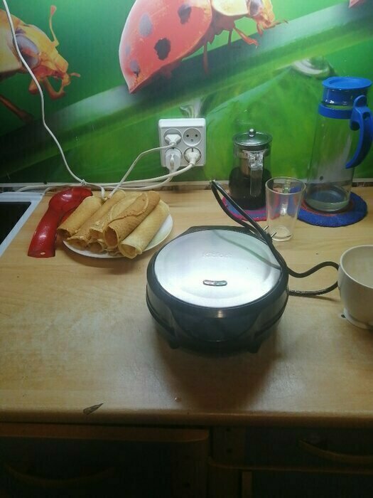 Удобная, быстрый нагрев, лёгкая,а самое главное не дорогая. Вкусные и тонкие трубочки получаются. Очень короткий шнур питания. Ну и лампочки не понятно для чего установлены. За свою цену конечно товар огонь!