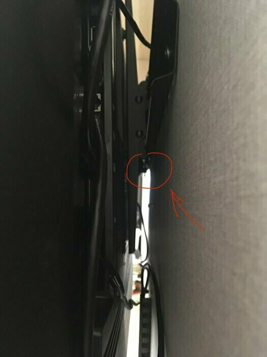 Нужна длинная тонкая отвёртка, длинной 30-40 см, чтобы закрутить винты для нижней фиксации. Обматерил все и вся пока в ограниченом пространстве между стеной и телевизором еле-еле закрутил винты