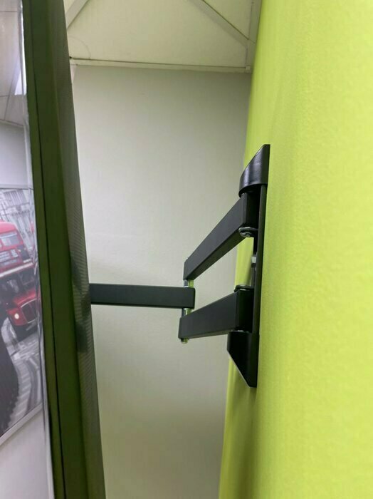 Надёжный кронштейн, сделан качественно. Метал толстый. При поворотах не качает. В заданном положение фиксируется без проблем.