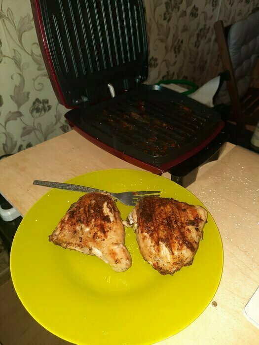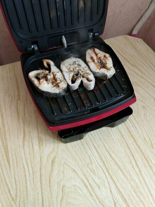 Отличный гриль, очень нравится, пользуемся с удовольствием.