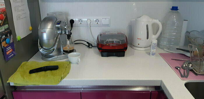 Прелести цвет и отсек для бутербродов. Брала в подарок. Скорее дачный вариант в дождливую погоду или для очень маленькой кухни. Для одного человека самое то, а вот для семьи посоветовала бы взять модель большего размера.