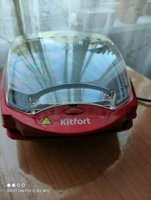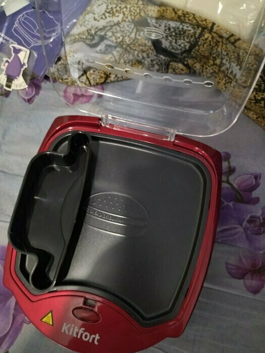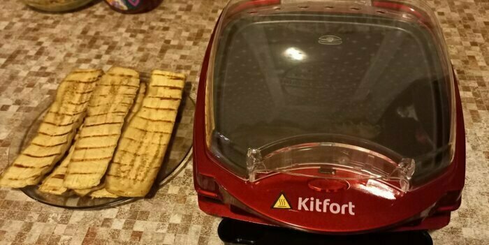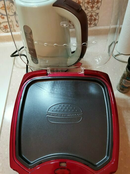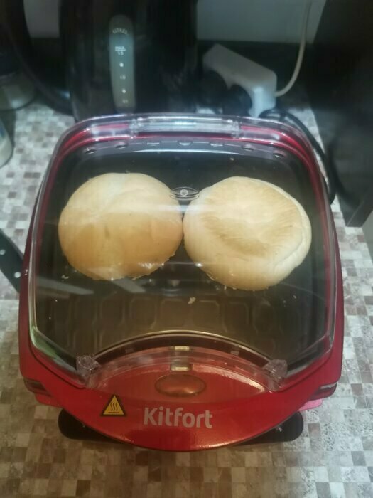 Брал в качестве подарка. В таблице сравнения был третий, но из-за внешнего вида сделали выбор. Некоторые детали не отшлифованы, имеются зазубрены на краях. Удобная функция подогрева булочек совместно с основным грилем.