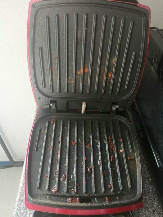 Очень удобный гриль! Можно приготовить буквально всё от мяса до бутербродов. Очищать после готовки относительно несложно, крошки от хлеба легко сметаются с поверхности гриля. Для рыбы и тп. лучше использовать фольгу или пергаментную бумагу. Очень приятная цена для такой прекрасной вещи!)