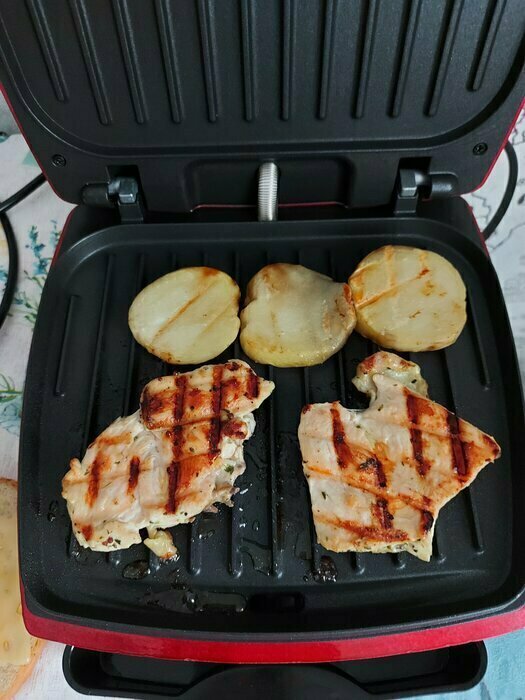 Покупала в подарок, люди любят фастфуд, они теперь едят еду приготовленную в этой грили. Так, что оказалась отличная штука