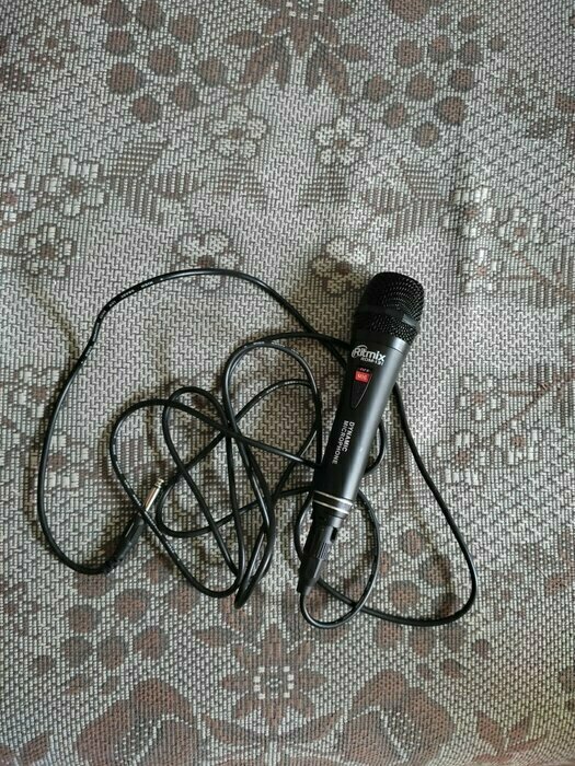 тихий, при подключении колонке с караоке фонит. для того чтоб спеть надо либо громко кричать, либо пихать его в рот, неудобнов любом положении