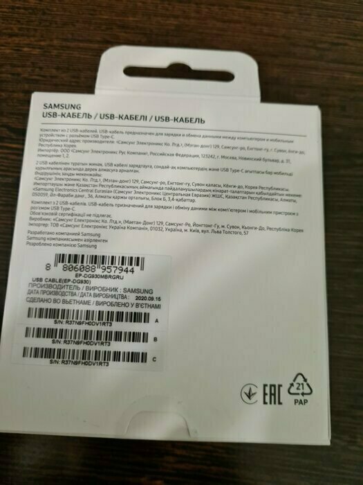 Отзывы о кабеле USB - USB Type-C, 1.5м, Samsung EP-DG930MBRGRU