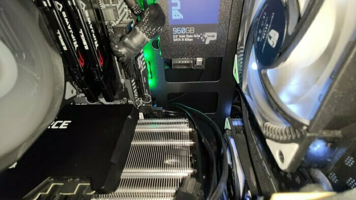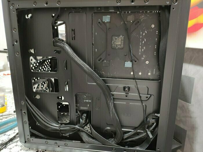 Перенёс в этот корпус старое железо на mATX плате Gigabyte H81M-S1 с картой MSI GeForce GTX 970, свободно встали, места под охлаждение достаточно. Дополнительно встали 3 120мм вентилятора, все кабели уместились на заднюю часть корпуса. В случае с некоторыми кабелями могут возникнуть проблемы при проведении их между щелями с краёв стенки, но в целом зазор позволяет провести даже 8pin.