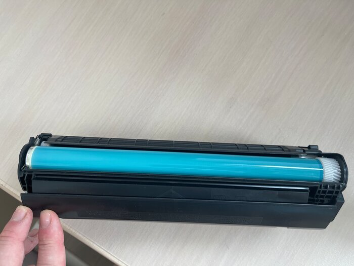 Прогоняю через печать чистый лист (с одной точкой) - полоса постепенно уходит (более 50 раз). Сейчас её практически не видно, но для ответственных документов пока не подходит (использую предыдущий картридж этой же марки). Надеюсь проблема уйдёт.