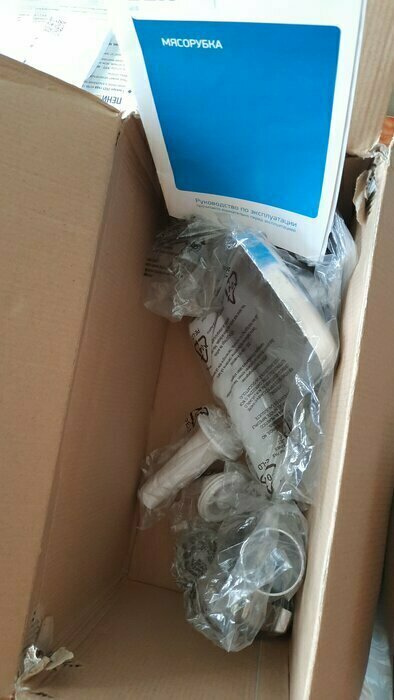 Неполная комплектация. Отсутствуют второй перфорированный диск для фарша и насадка для приготовления домашних колбасок.