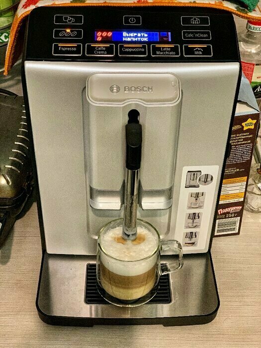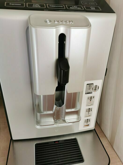 - Отвратительная служба поддержки (обращался по кофеварке и по комбайну) - Через 5 месяцев перестал работать капучинатор. Поддержка бош сказала, что-то типа "вообще у нас классный пластик" (смотри ответ к отзыву). Как я сам выяснил, в верхней части капучинатора есть маленькая дырочка и ее надо прочищать иголкой, т.к. водой она не промывается. - тач кнопки. Иногда не получается включить с первого нажатия. Зато протирая от пыли варишь себе пару кружек кофе. - для переключения размера помола надо перебороть в себе страх отломать пластик. просто он так туго щелкается.