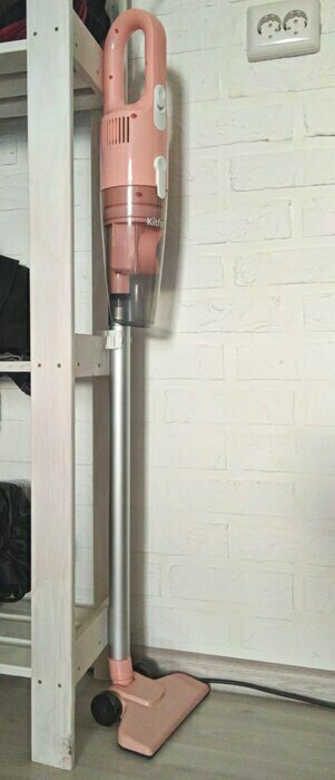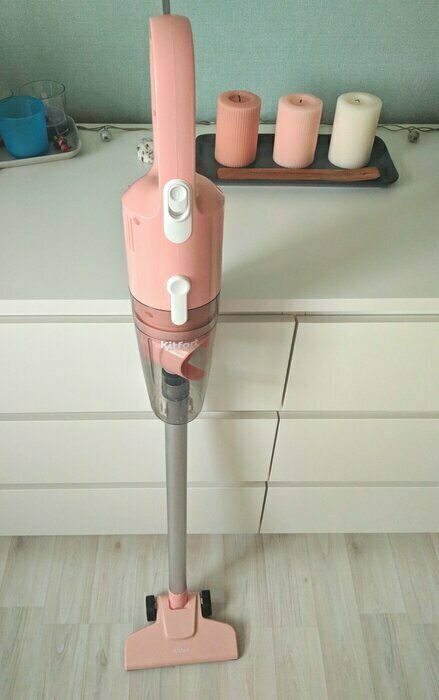 Долго выбирала ручной пылесос для ежедневного использования, остановила свой выбор на модели Kitfort KT-586-3 (розовый). После первого использования очень порадовала мощность этого чудо-пылесоса в сочетании с его легкостью, хорошо собирает пыль и волосы с ковролина. При чистке дивана крайне актуальна возможность использовать как ручной пылесос (насадка вставляется непосредственно в корпус пылесоса). Щётка маневренная, удобно подлезает под диван, так как она маленькая и низкая. Хорошее соотношение цены и качества.
