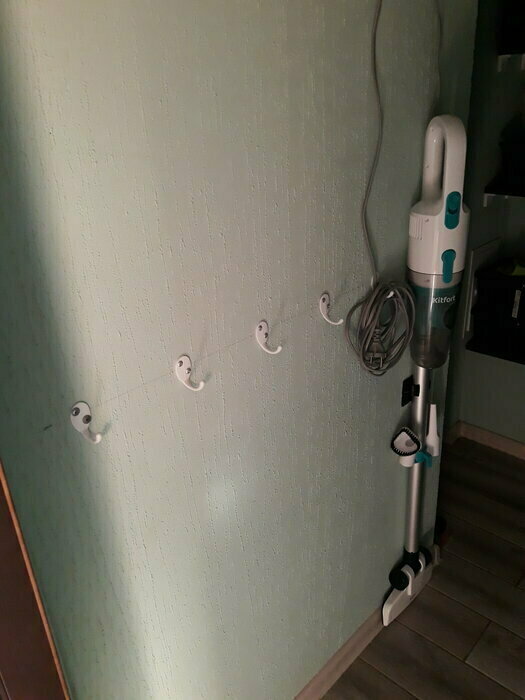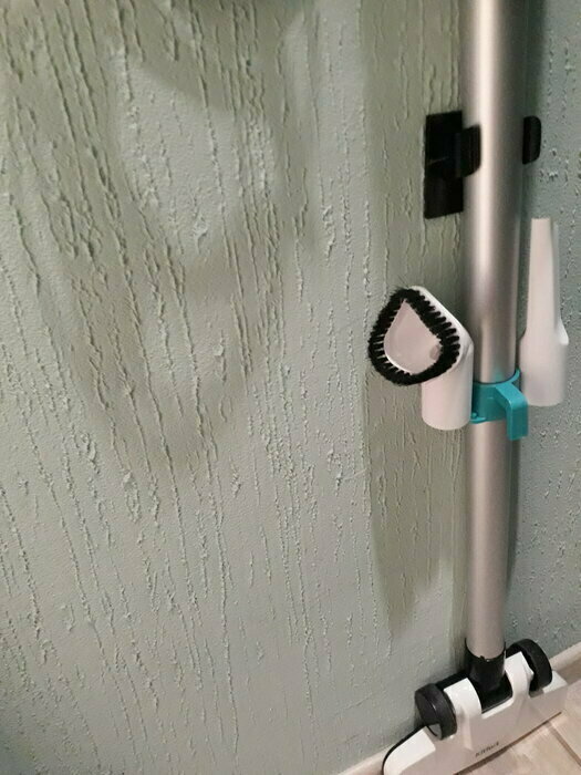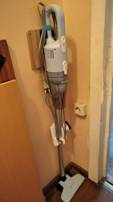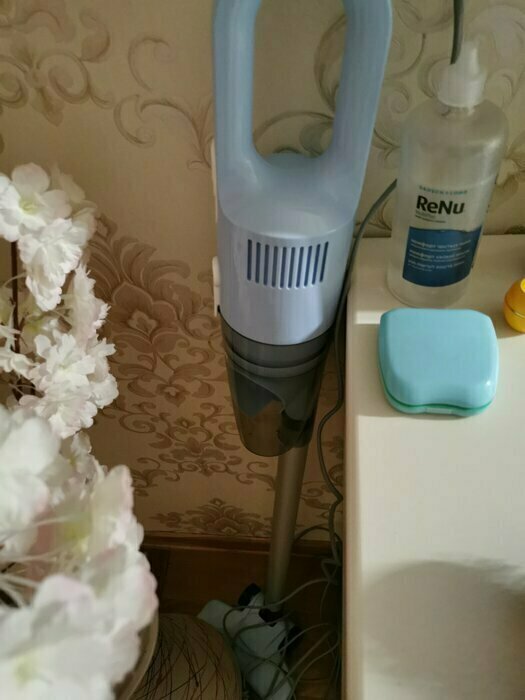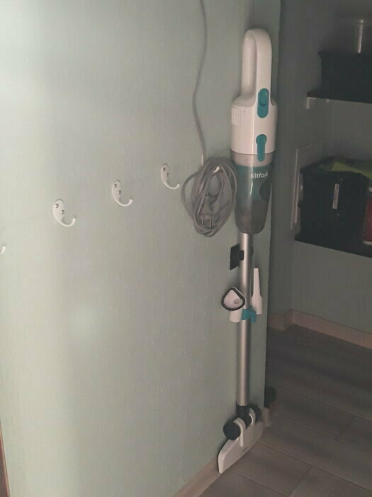 Легкий, маневренный, достаточно легко чисть. Практически не требует места для хранения, длинный кабель. В комплекте две дополнительные насадки, кронштейн для хранения пылесоса с двумя вариантами установки(скотч или шурупы) и кронштейн-крюк на трубу для хранения насадок и кабеля. На удивление неплохая мощность всасывания для таких размеров и цены. Да и вообще он симпатичный.