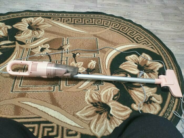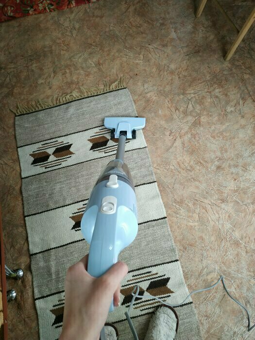 Пылесос отлично убирает пыль, волосы с пола, остается только протереть шваброй и чистота в доме. Можно пылесосить ковёр с небольшим ворсом, но волосы собирает только с помощью маленькой ворсовой насадки, жаль, что нет большой в комплекте. Благодаря тому, что контейнер для сбора пыли находится сверху, можно чистить под диваном, шкафами и т.п. Также пылесос легко собирается и моется, переделывается в ручной. Шумит как и все.