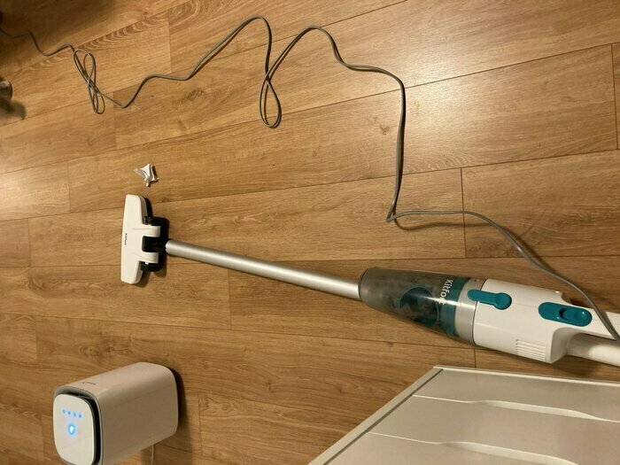 Легкий, удобный. Хорошо убирает с пола и гладких ковров. Основная щетка хорошо прилегает к поверхностям и вертится как нужно, Просто вытряхивать мусор, можно помыть фильтры. Шнура на комнату хватает. Отлично подходит для ежедневной уборки пола.