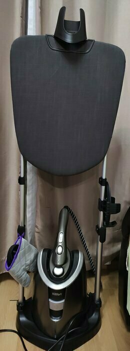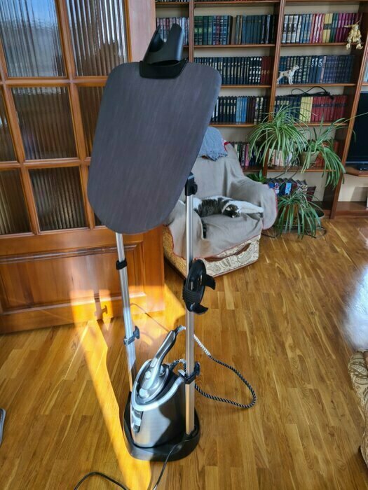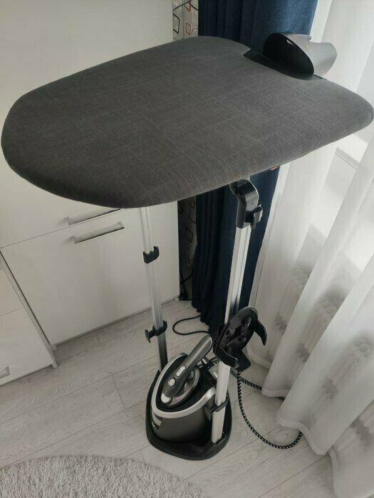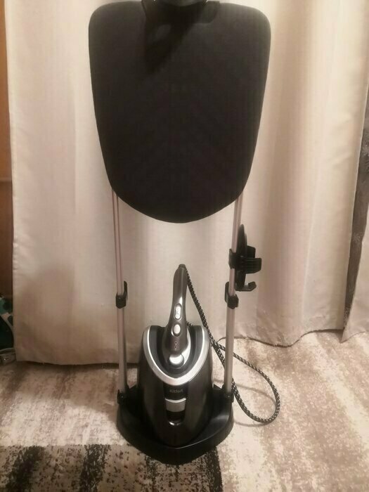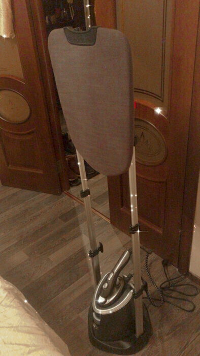Первое впечатление при осмотре положительное. Когда начали использовать поняли что в выборе данного отпаривателя не ошиблись. Отпаривает на 5. Очень удобно что отпариватель можно использовать отдельно от подставки что позволяет отпариватель заневески не перетаскивая всю конструкцию из комнаты в комнату. Подошва утюжка негревается что исключает появления влаги и намокания одежды( на нашем старом отпаривателе это была проблема и очень раздражало). Если забыли выключить его то он сам напомнит о силе звуковым сигналом а потом сам уйдет в спящий режим а это очень полезная функция(лично для меня). Удобная доска с регулировкой угла наклона. В общем мы очень довольны и не жалеем что купили.
