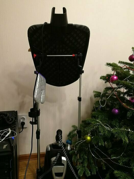 В целом, покупкой очень довольна. Удобно вешать рубашки, футболки. Очень неубодно наматывать шланг, куча танцев с бубнами в конце процесса ( раньше был попроще, шланг просто цеплялся к вешалке). Пара достаточно для неплотной одежды, джинсы не тянет
