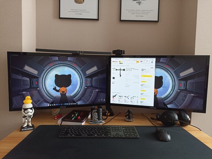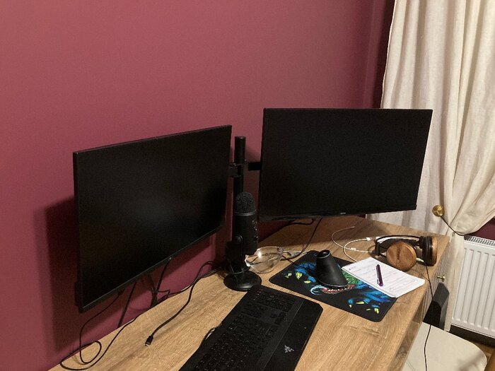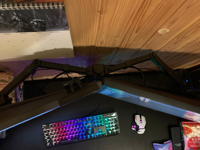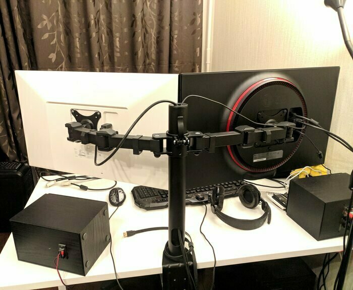покупкой доволен, но возможно что аналогичное крепление, но с вертикальным расположением мониторов будет более эргономичным. При длительной работе за 27 дюймовыми мониторами устанет шея от кручения головой вправо-влево