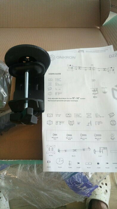 Такой подставы от товара с русским штрих-кодом не ожидал. Покупал для крепления сквозь стол. Есть положительный опыт такого крепления от другого производителя. так вот, резьбы под центральный болт нет. Она сорвана. Пришлось брать центральную стойку от другого производителя, от крепления с одним монитором (благо трубки один в один и хорошо, что в запасе была). Казалось бы ну что такого? Так вот после установки два совершенно одинаковых монитора висят один ниже другого почти на сантиметр. Вместе их не свести, чтоб получился "один сплошной монитор". Пришлось убрать до лучших времен, вдруг при помощи скобы понадобится к столу крепить. Разочарован очень сильно.