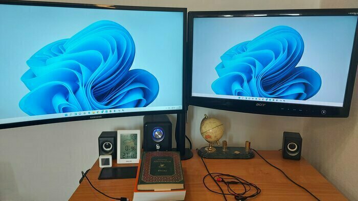 Не хватает горизонтальной регулировки, если разные мониторы, придётся придумывать всякое