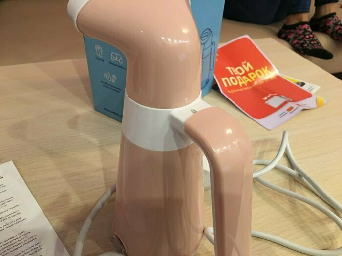 Очень легкий, маленький и бюджетный. Хорошо отпаривает. Достался за 700 рублей в Мвидео. Удобно для детской одежды