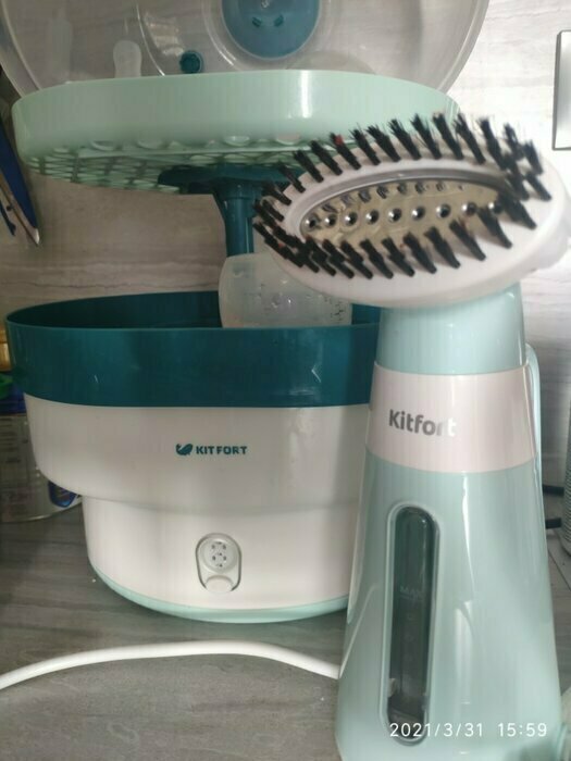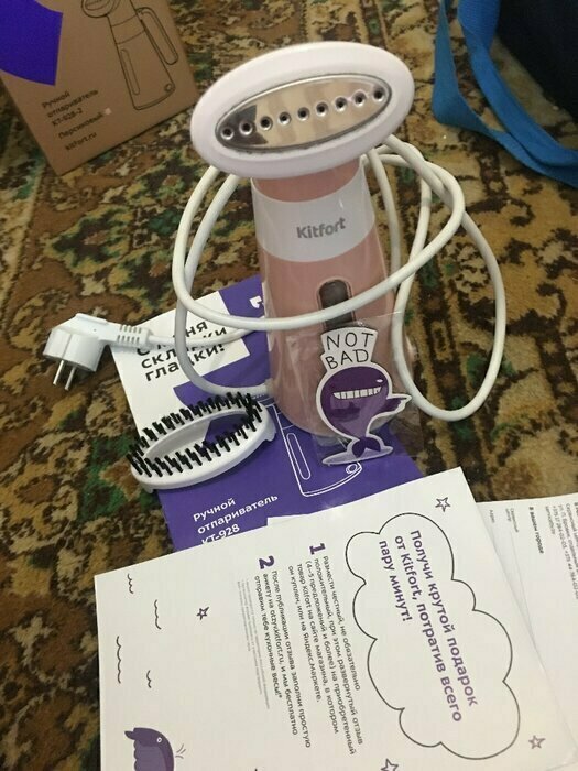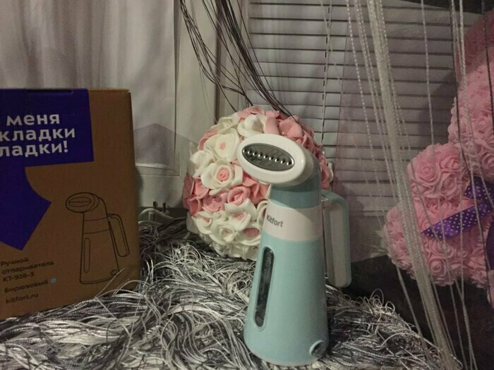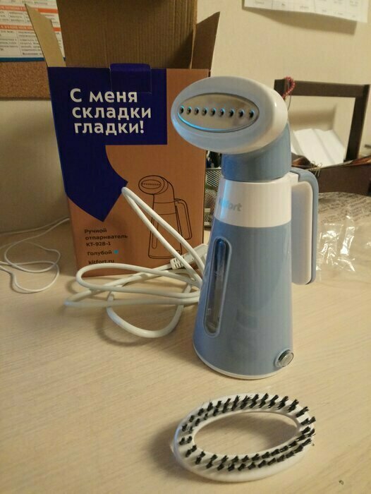 Данный отпариватель понравился всей нашей семье . Все складки отпариваются великолепно . Даже хлопковые рубашки без проблем можно отпарить им за пять минут . Так же с легкостью отработаются и шелковые платья и юбки .Всем рекомендую к покупке данный отпариватель kitfort.
