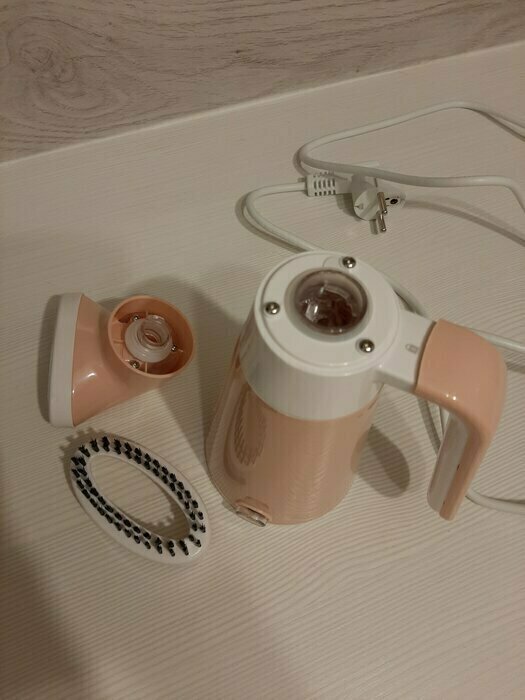 Приобрели этот отпариватель и первое, что бросилось в глаза - комочки налёта внутри, которые быстро не вымываются. При использовании сильно нагревается корпус. А так отпаривает хорошо. Выполнен в приятном цвете. Женщине нравится!