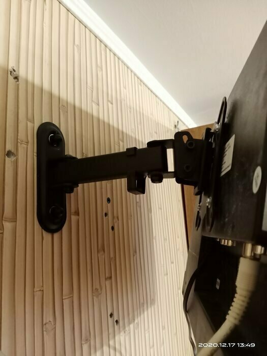Крепление хлипкое, винты в комплекте длинные, не подходят к тв, Ножка кронштейна невероятно короткая, что даже тв 24 дюйма просто не развернуть , не подходит для установки в угол тупо не хватает,я вообще боюсь представить как он может выдержать 32 дюйма, это невозможно, и 32 дюйма на ножке в 10 см ну никак не повернуть, в общем фуфло