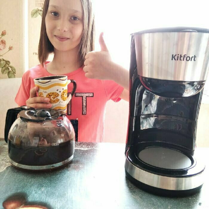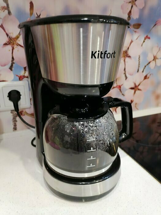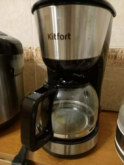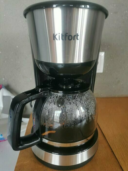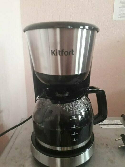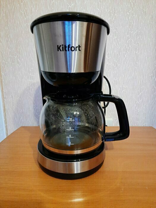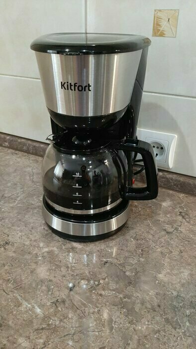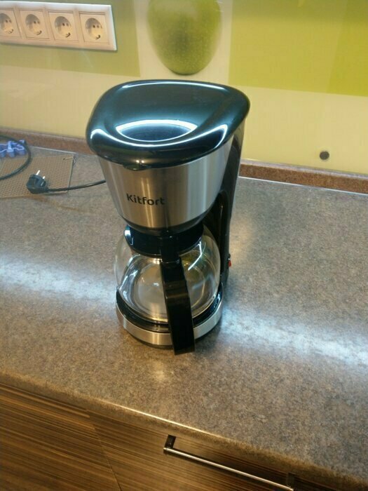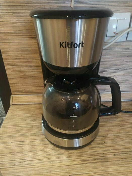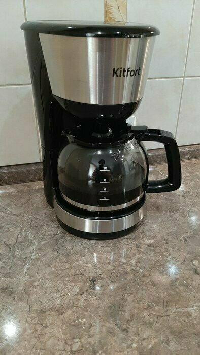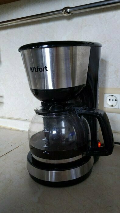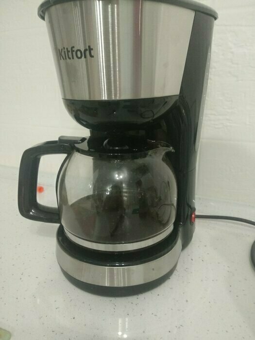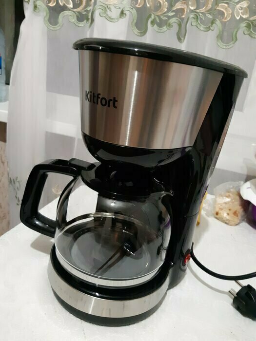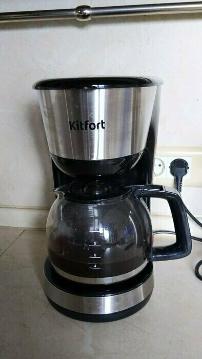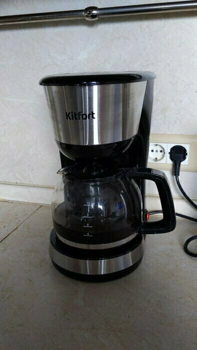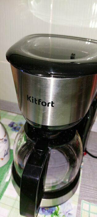 Купили сегодня кофеварку китфорт. Сварила кофе за 5 минут. В принципе со своей функцией справляется хорошо. Оптимальный объем кувшина, многоразовый фильтр. Посмотрим как будет работать в дальнейшем. Пока претензий нет.