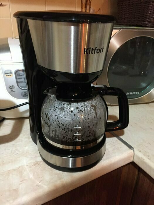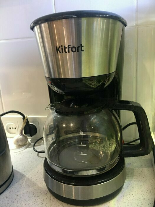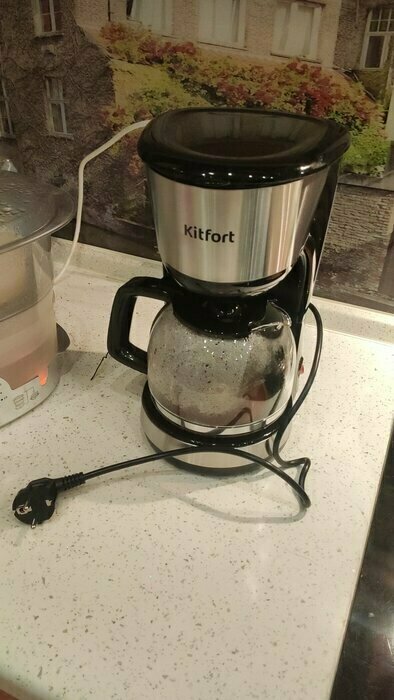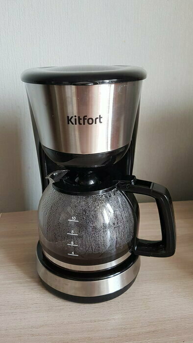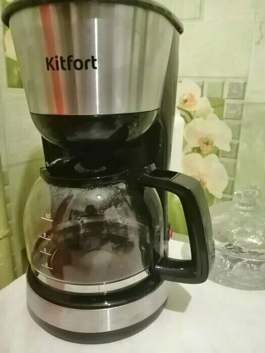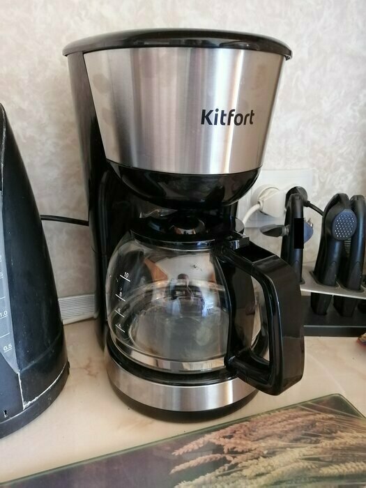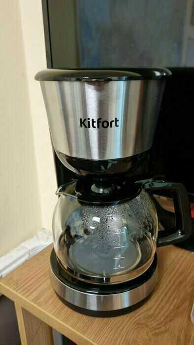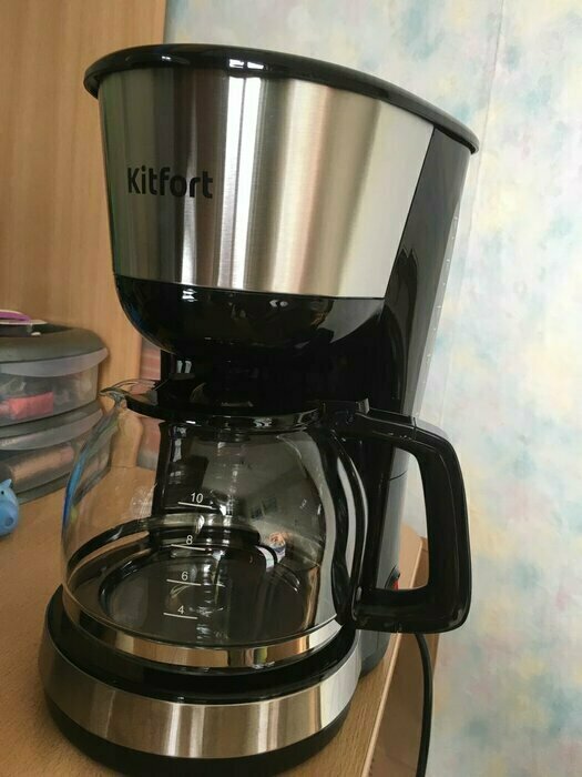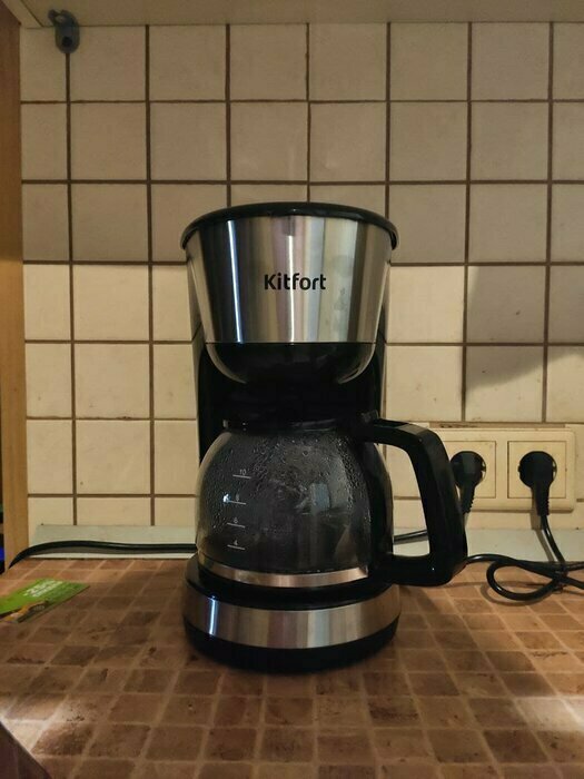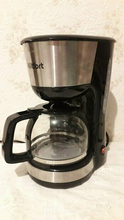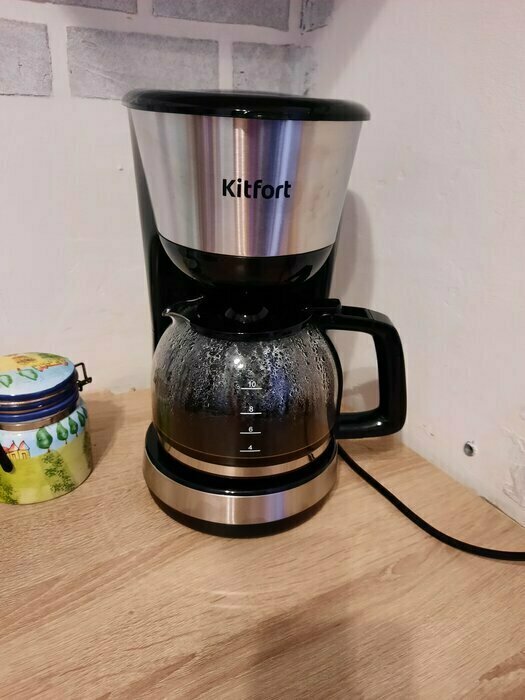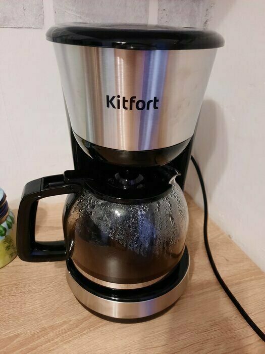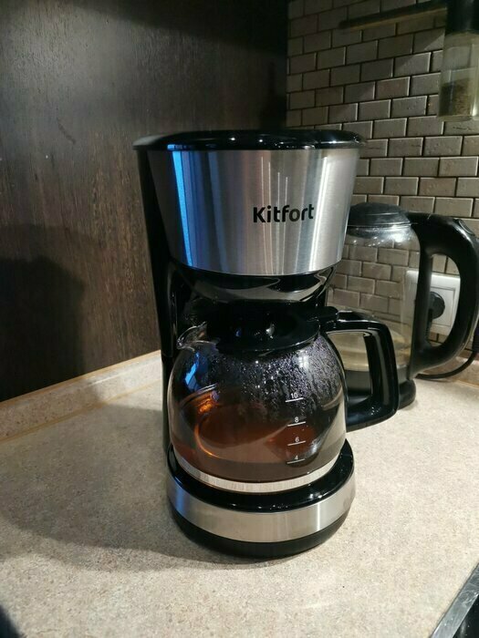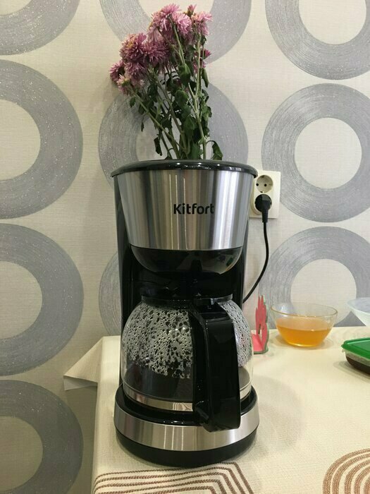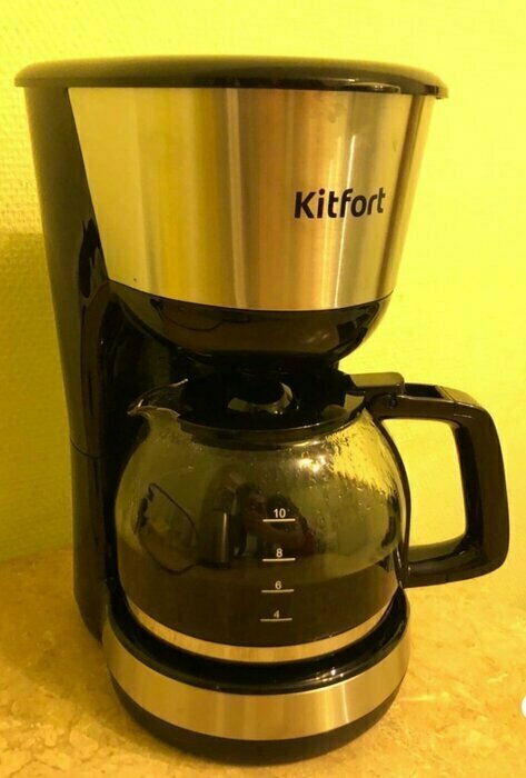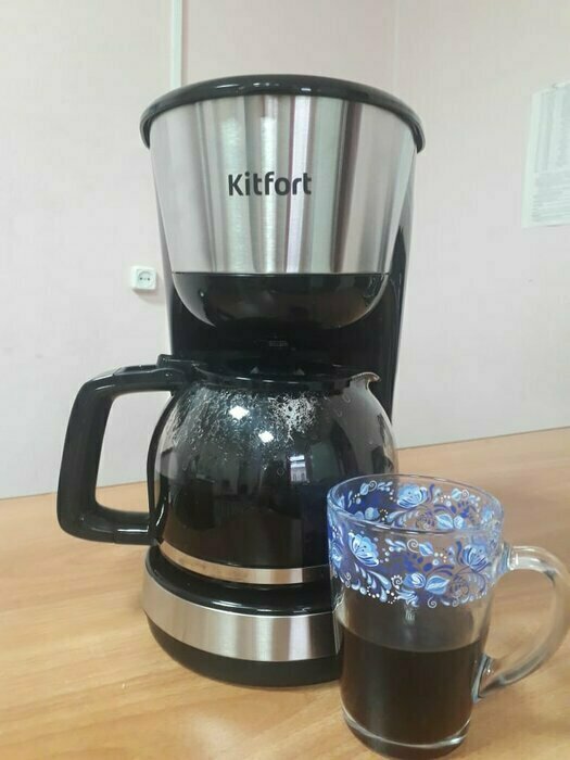 Купили сегодня кофеварку китфорт. Сварила кофе за 5 минут. В принципе со своей функцией справляется хорошо. Оптимальный объем кувшина, многоразовый фильтр. Посмотрим как будет работать в дальнейшем. Пока претензий нет.