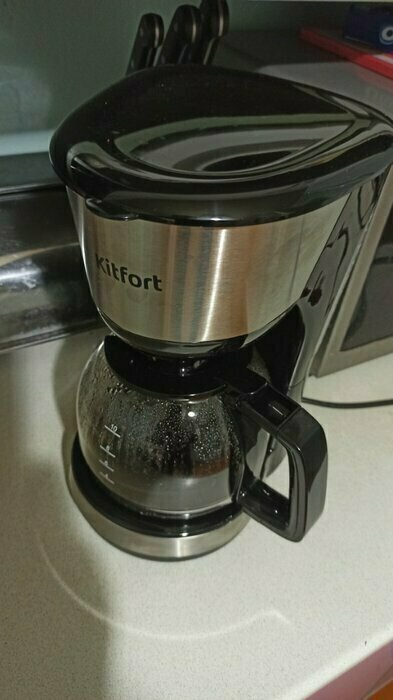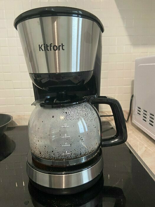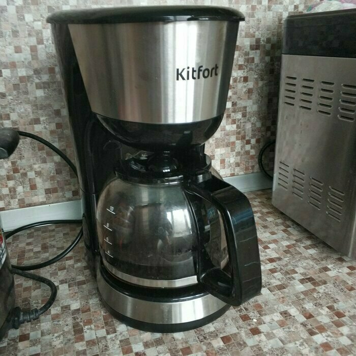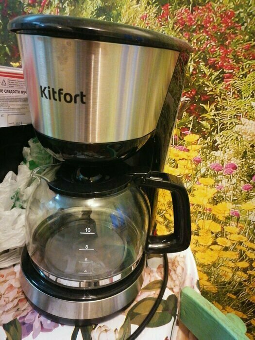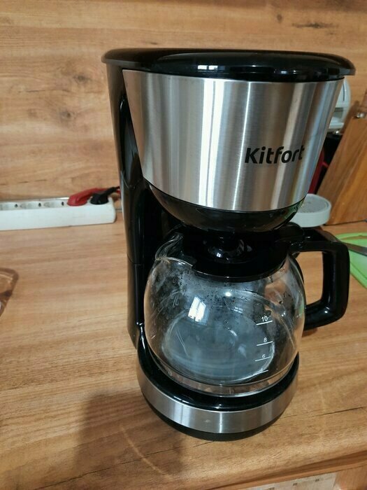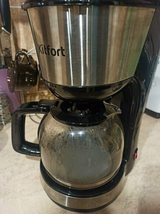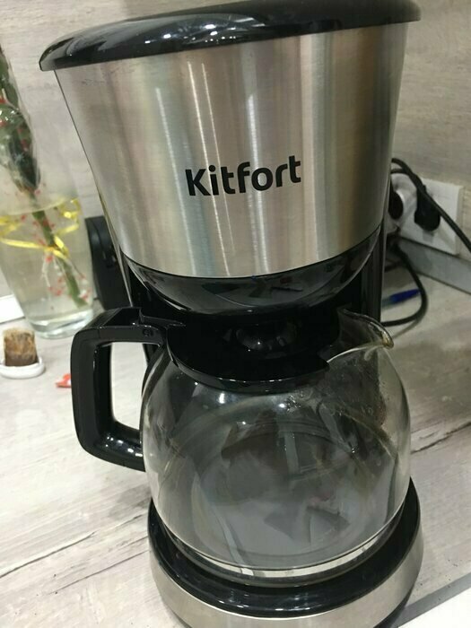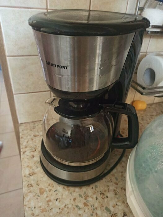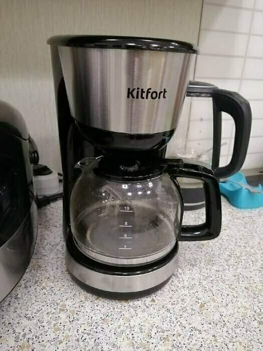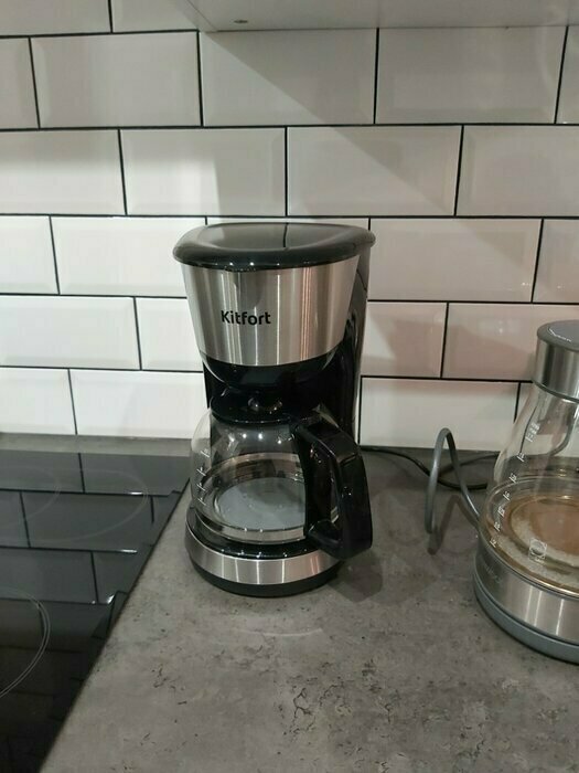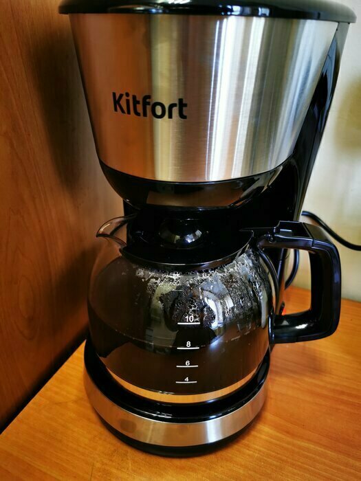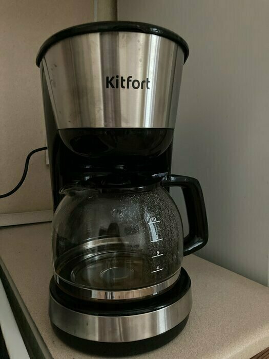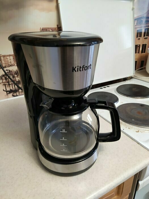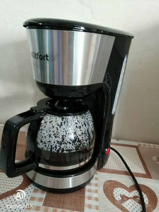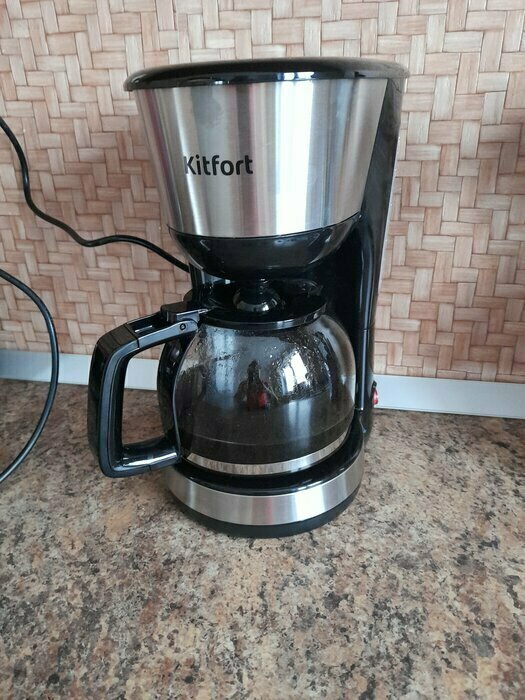 Купили сегодня кофеварку китфорт. Сварила кофе за 5 минут. В принципе со своей функцией справляется хорошо. Оптимальный объем кувшина, многоразовый фильтр. Посмотрим как будет работать в дальнейшем. Пока претензий нет.