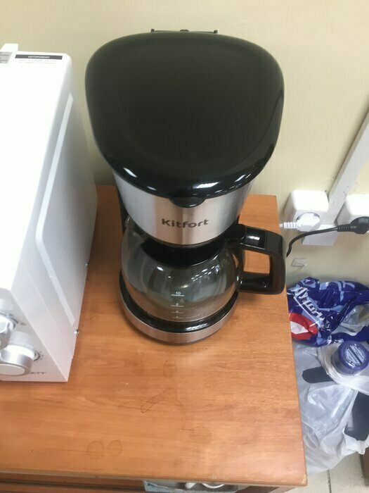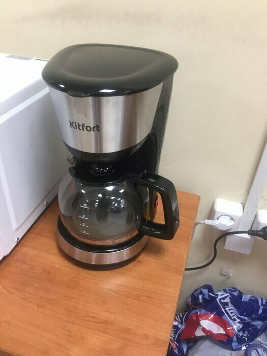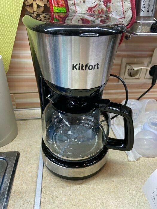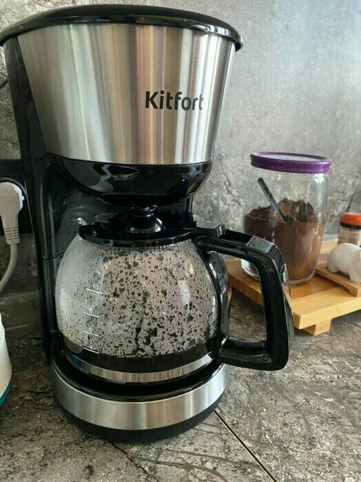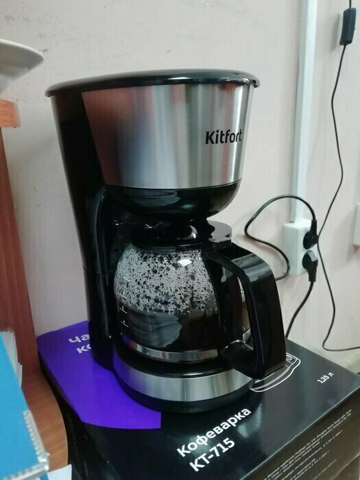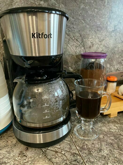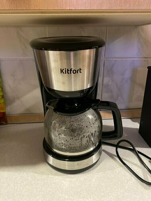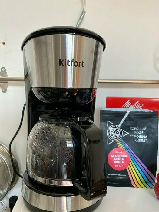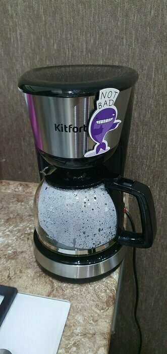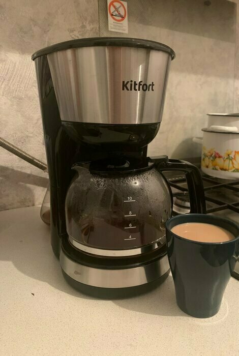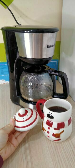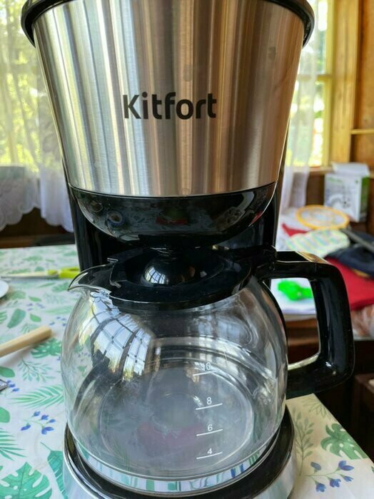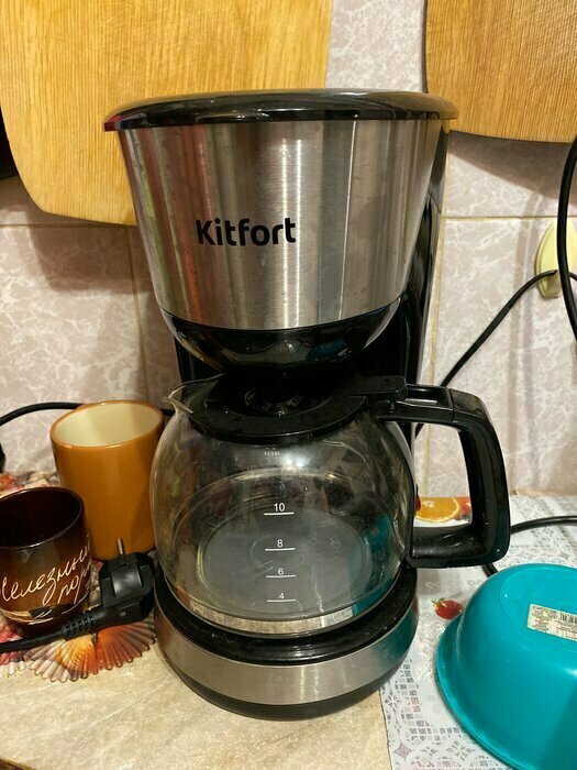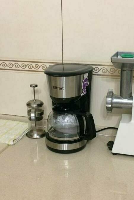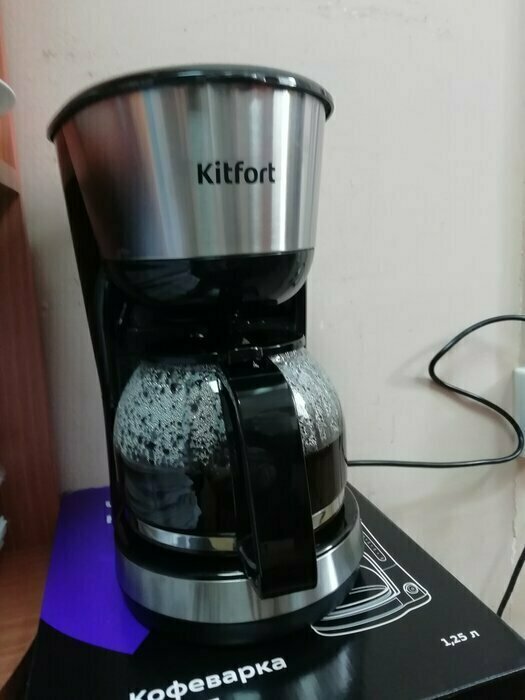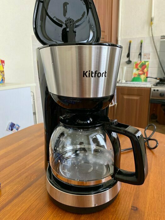 Купили сегодня кофеварку китфорт. Сварила кофе за 5 минут. В принципе со своей функцией справляется хорошо. Оптимальный объем кувшина, многоразовый фильтр. Посмотрим как будет работать в дальнейшем. Пока претензий нет.
