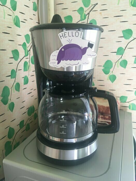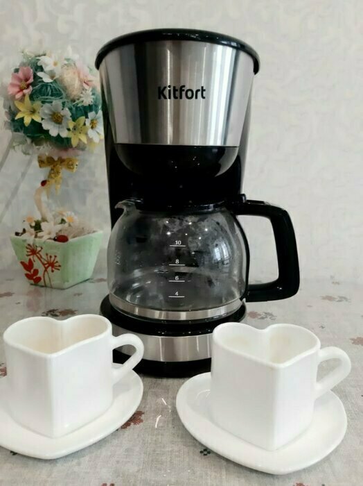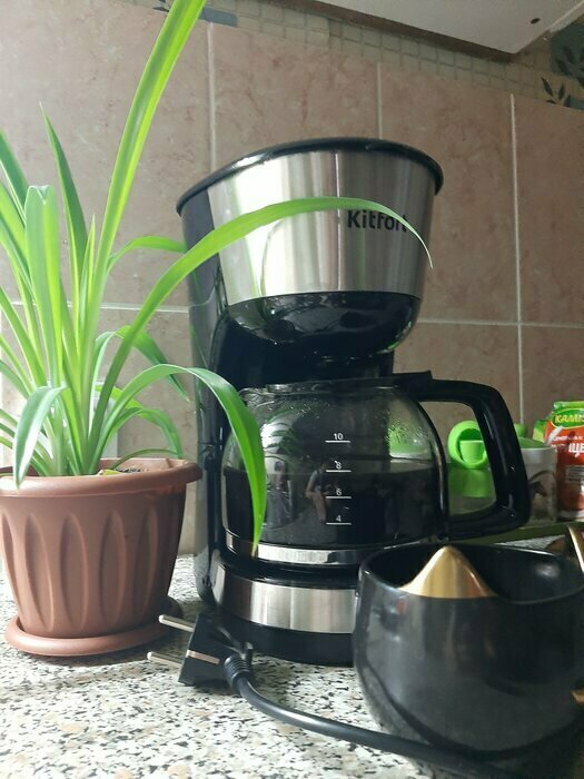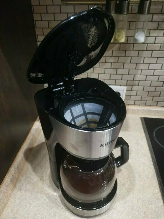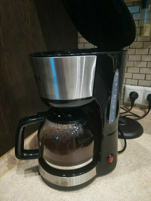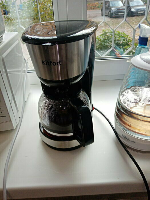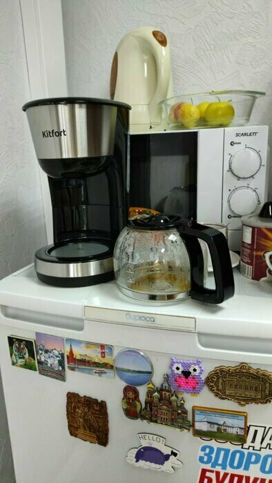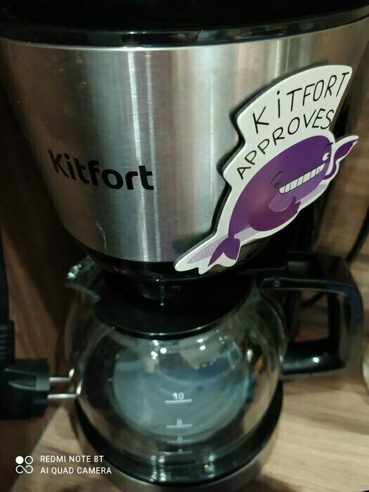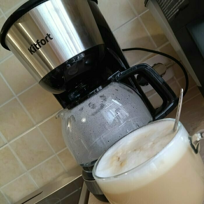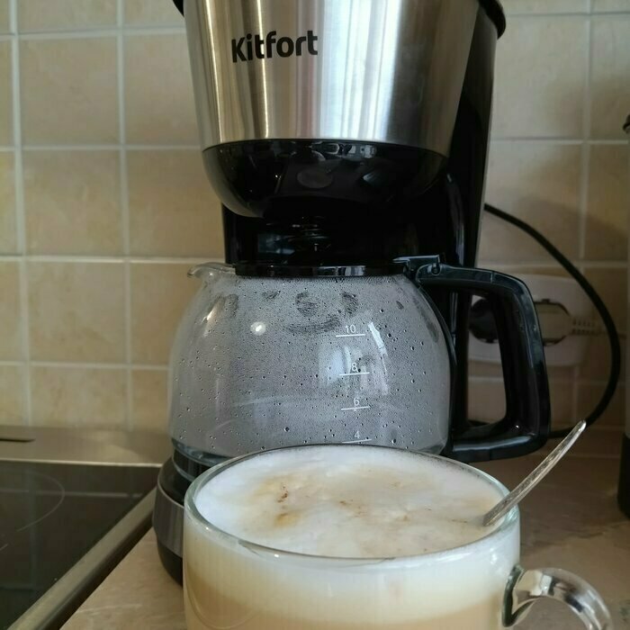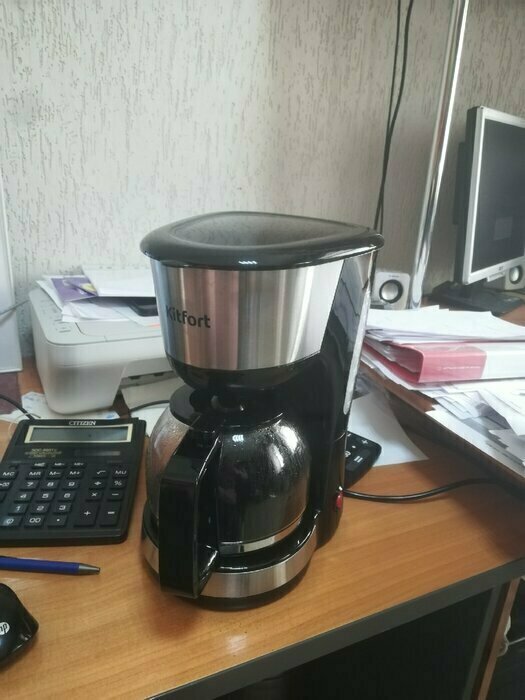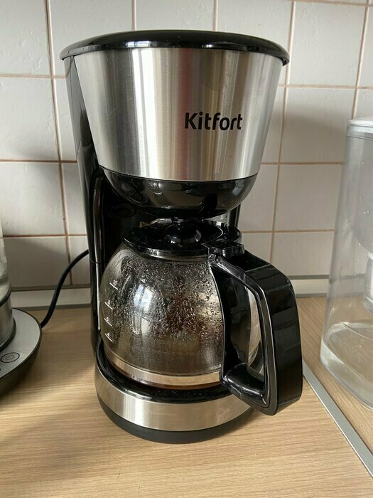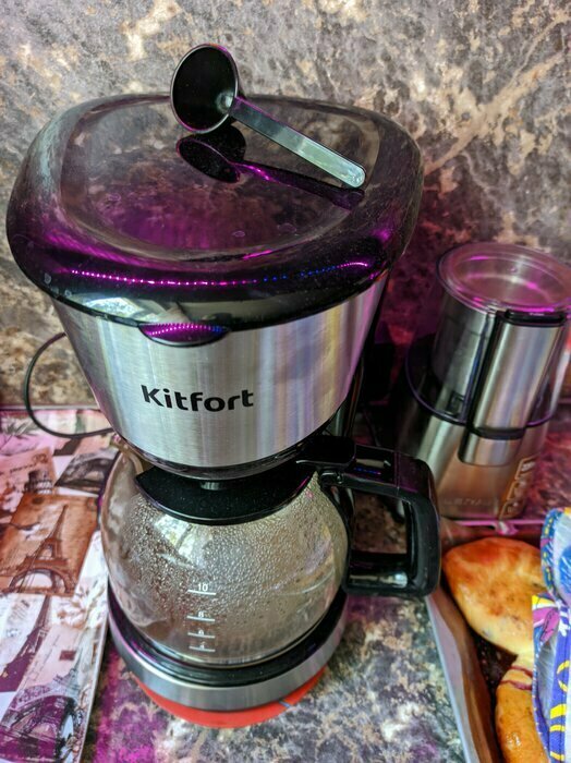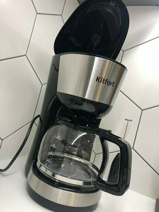 Купили сегодня кофеварку китфорт. Сварила кофе за 5 минут. В принципе со своей функцией справляется хорошо. Оптимальный объем кувшина, многоразовый фильтр. Посмотрим как будет работать в дальнейшем. Пока претензий нет.