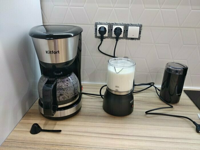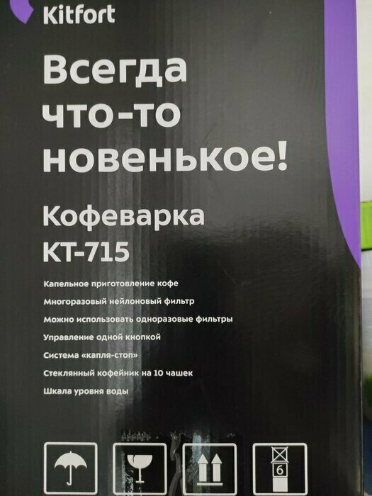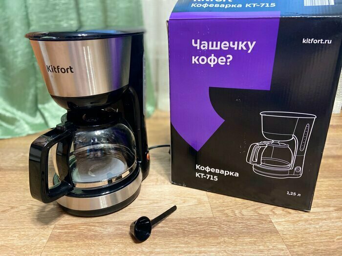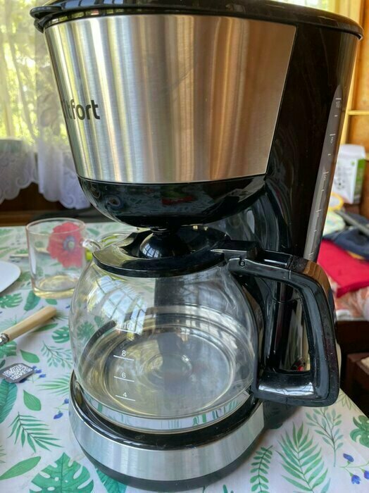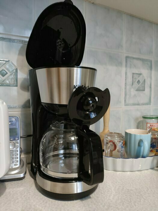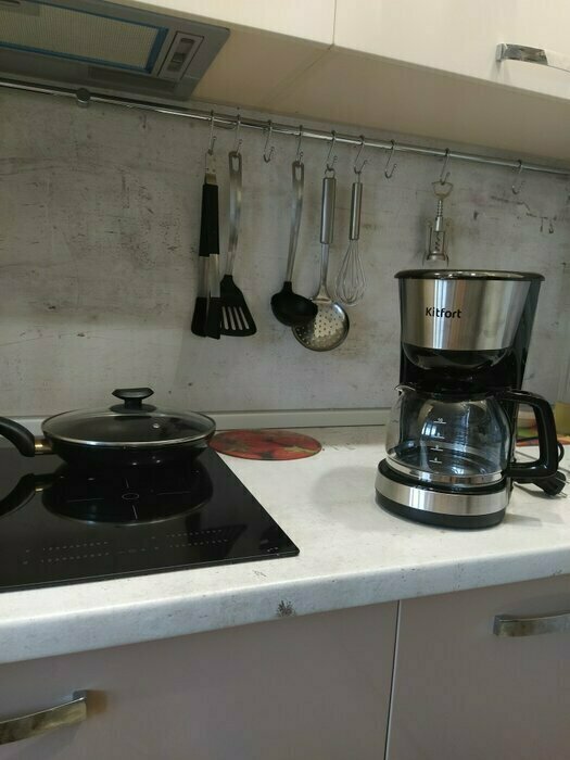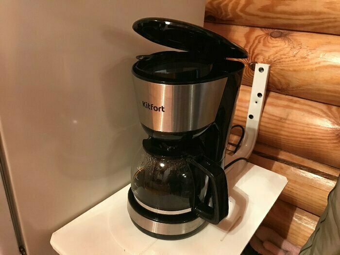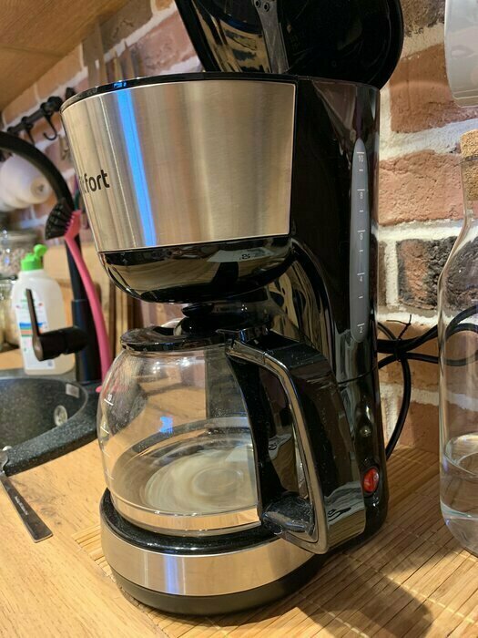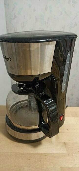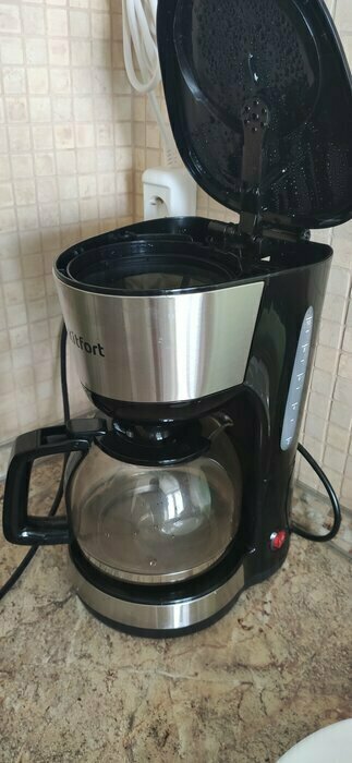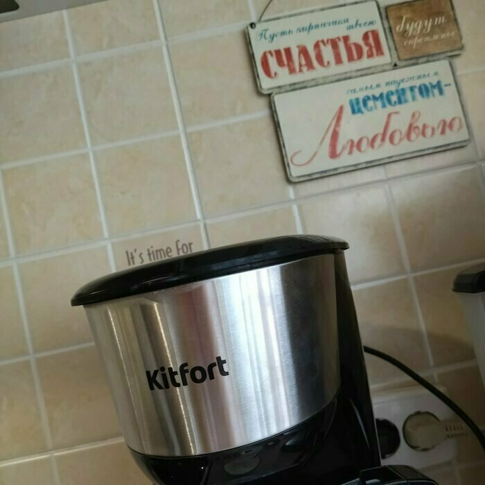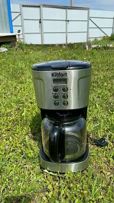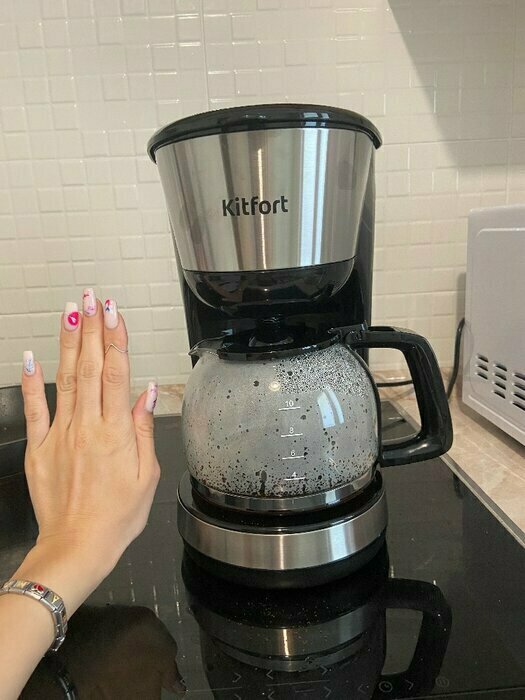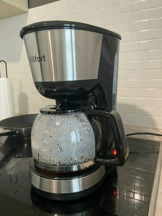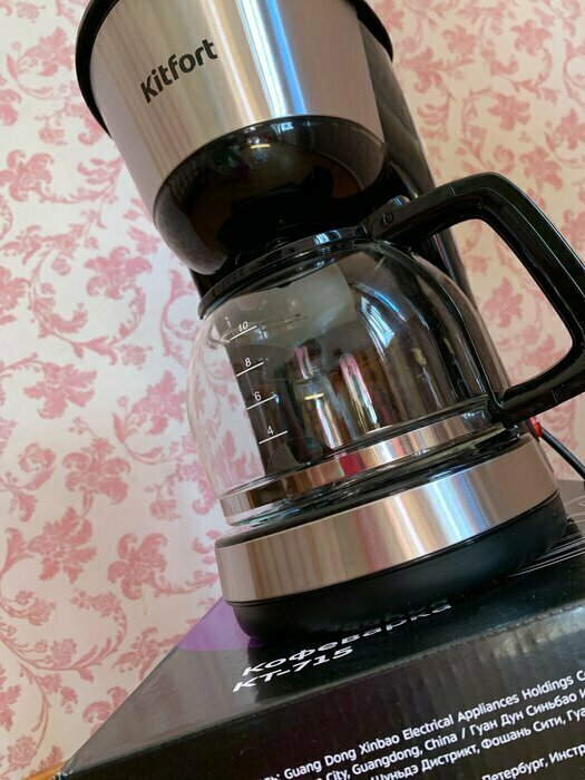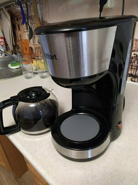 Купили сегодня кофеварку китфорт. Сварила кофе за 5 минут. В принципе со своей функцией справляется хорошо. Оптимальный объем кувшина, многоразовый фильтр. Посмотрим как будет работать в дальнейшем. Пока претензий нет.