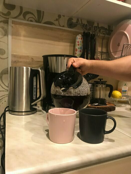Неделю назад купили эту кофеварку, пользуемся ежедневно. Пока только приятные впечатления, кофе готовится быстро, а главное получается вкусный! Фильтр и сам кофейник легко мыть, а противокапельная система не дает мараться всей кофеварке. Также хочется отметить удобство функций автоматического отключения, что позволяет не переживать, выключил ли кофеварку, и автоподогрев, позволяющий насладиться горячим кофе в любой момент после приготовления.