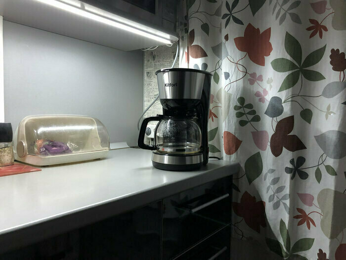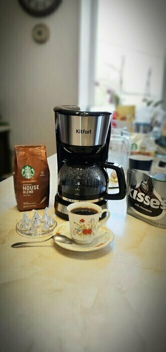 Кофеварку муж подарил на Новый год. Я очень люблю, когда приборы просты в употреблении. Это как раз про кофеварку KT-715 - минимум усилий при использовании, максимум удовольствия от полученного вкусного кофе ️! А ещё она отлично вписалась в интерьер кухни и не заняла много места. Очень симпатичная модель. Подарком довольна на все 100.